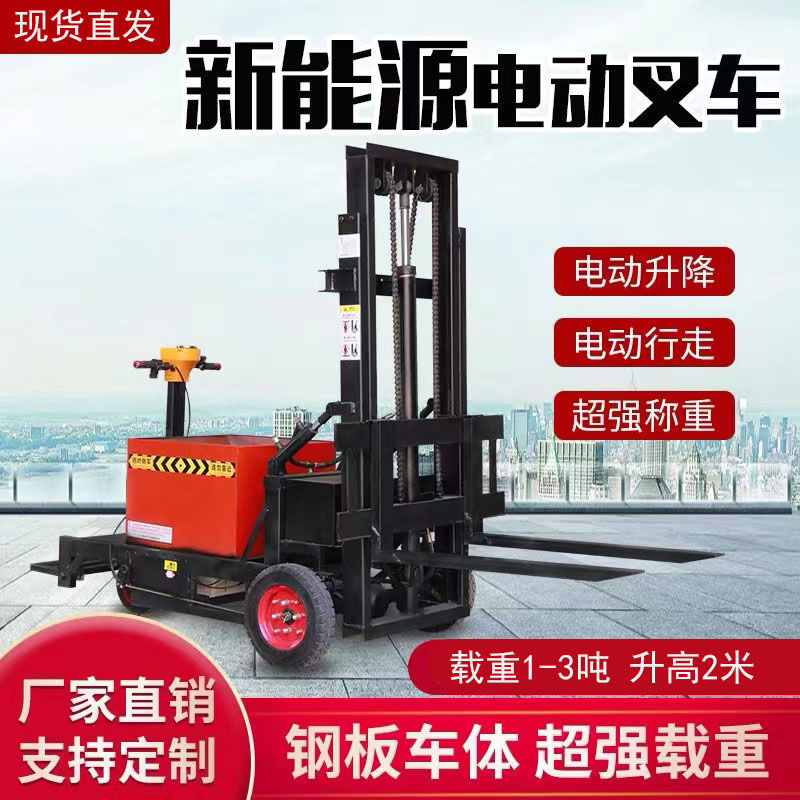 枣强县小型电动叉车1吨站驾式2吨液压升高铲车全自动仓储堆高车